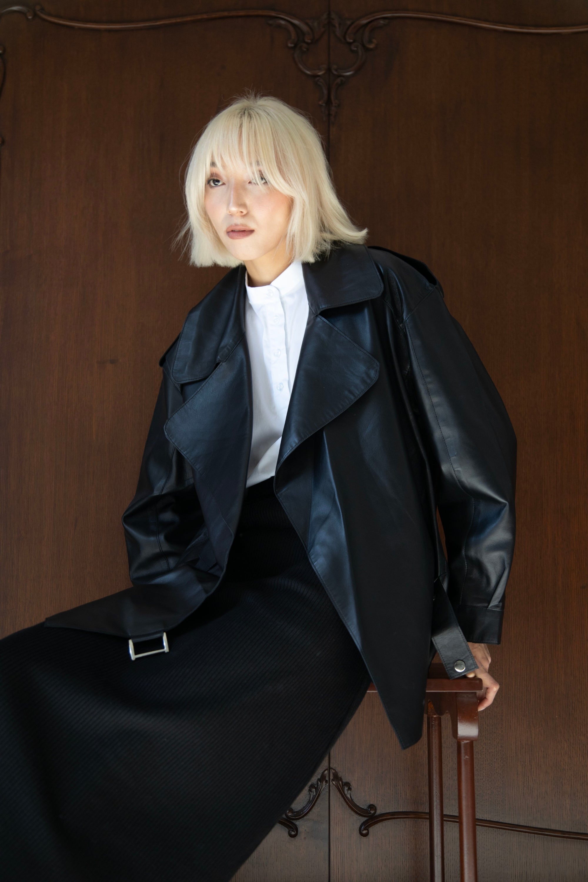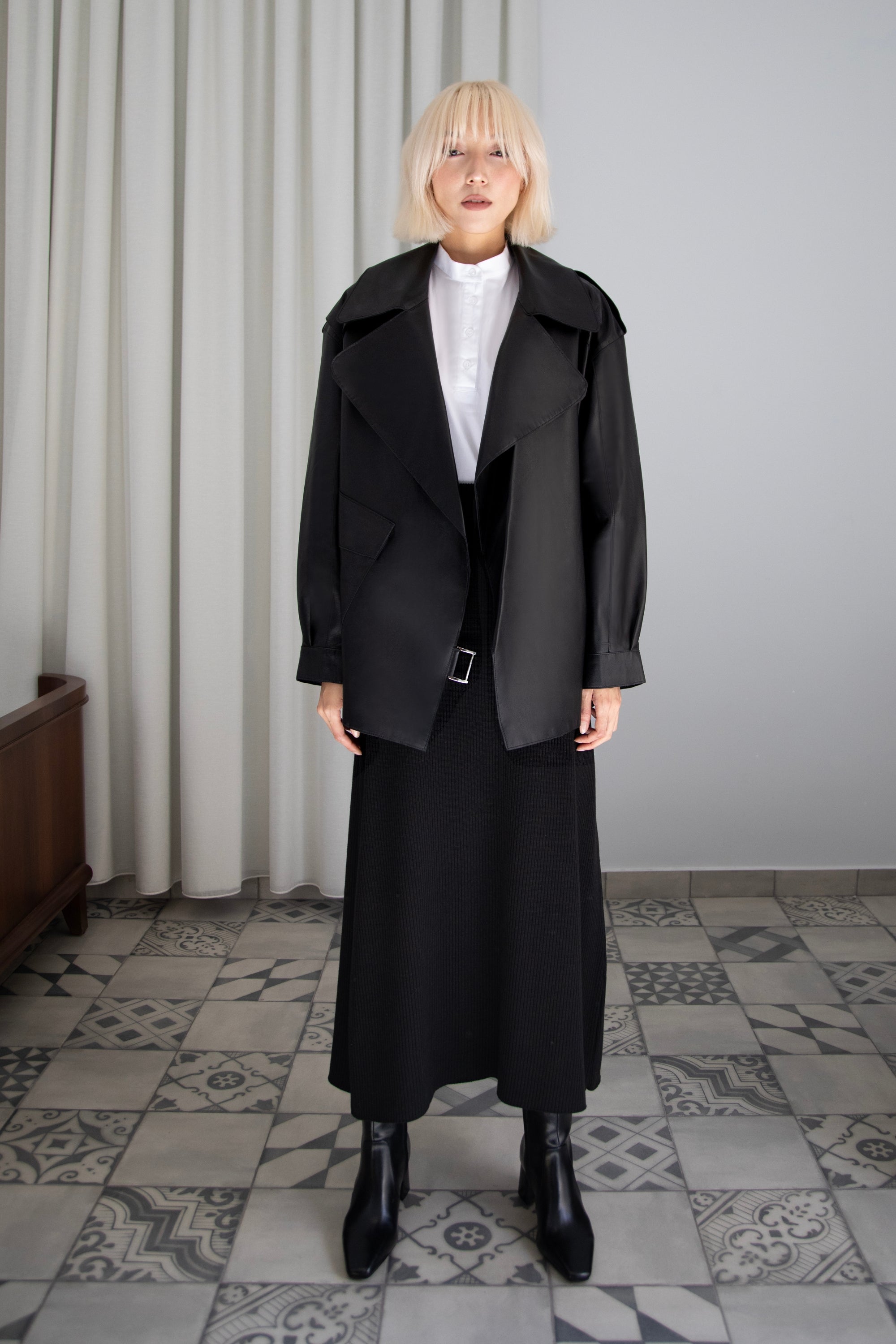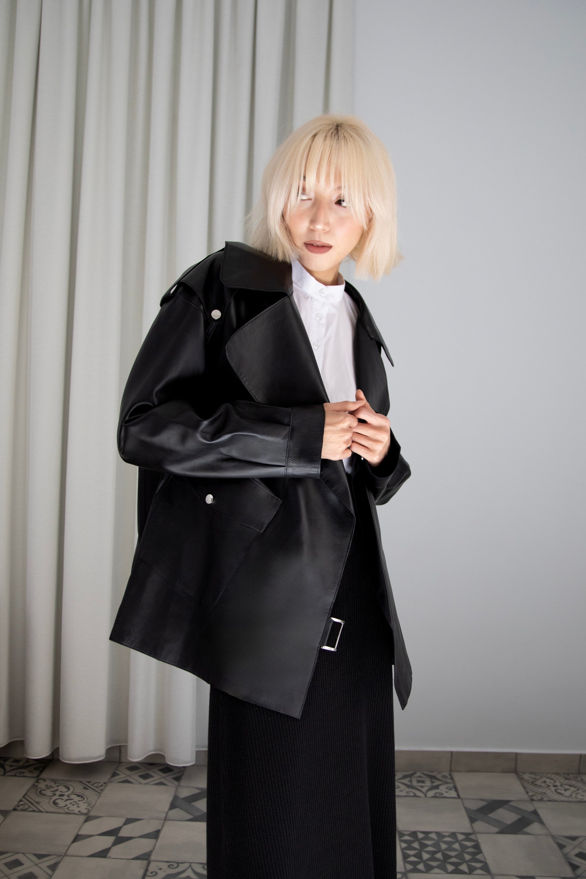 Leather made light: Rai is crafted from buttery-soft, genuine Nappa leather, and left unlined for a fluid, light-weight feel that makes it perfect for layering and in-between seasons. Its relaxed, draped, long-line form embodies a comfortable yet luxurious aesthetic.
