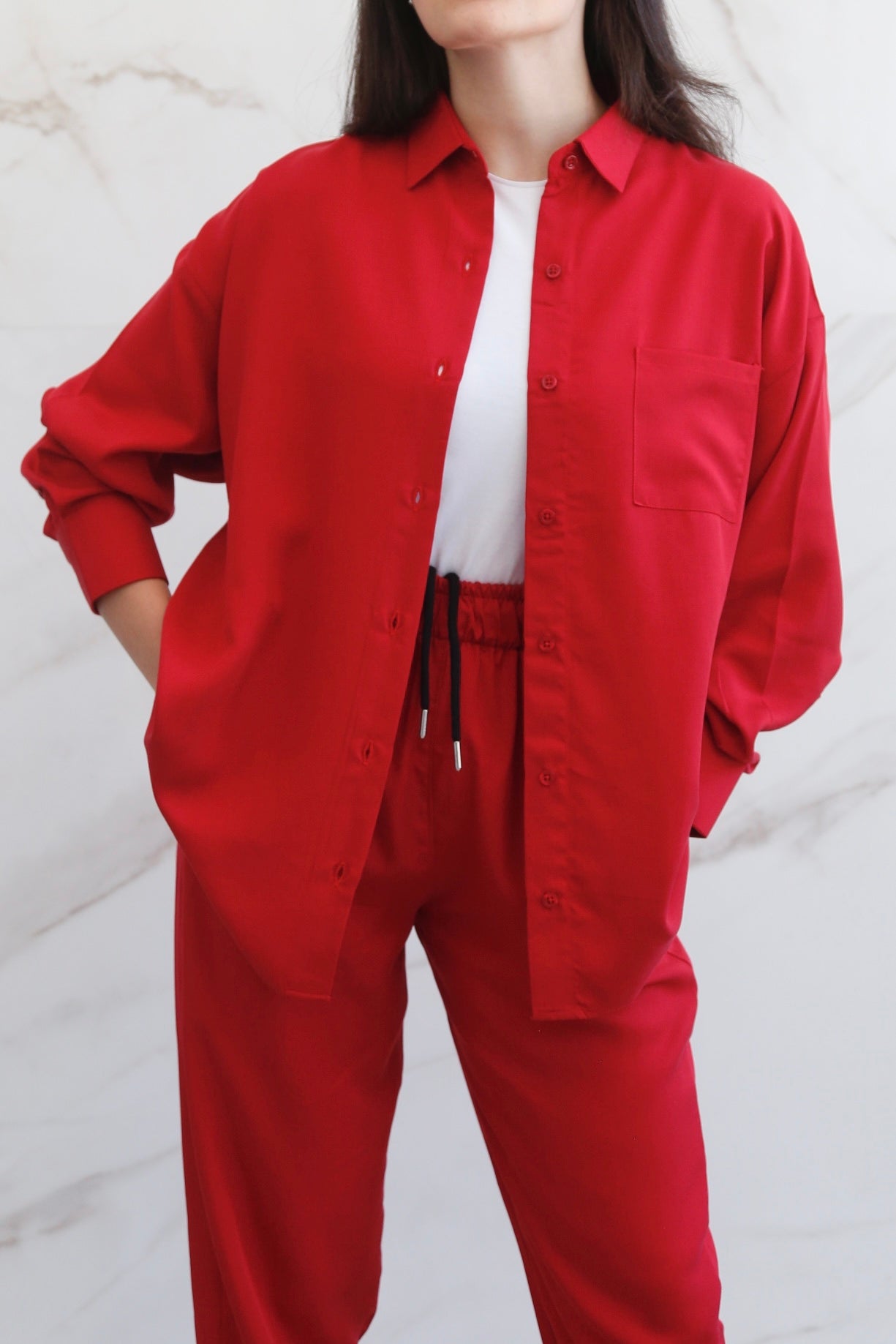 Fighting the hot weather with science. Our button-down shirt and relaxed trouser sets are made from 100% Lyocell : A cellulose-based eco-friendly fabric made from Eucalyptus pulp. Super breezy, butter-soft, sumptuous, and entirely compostable.