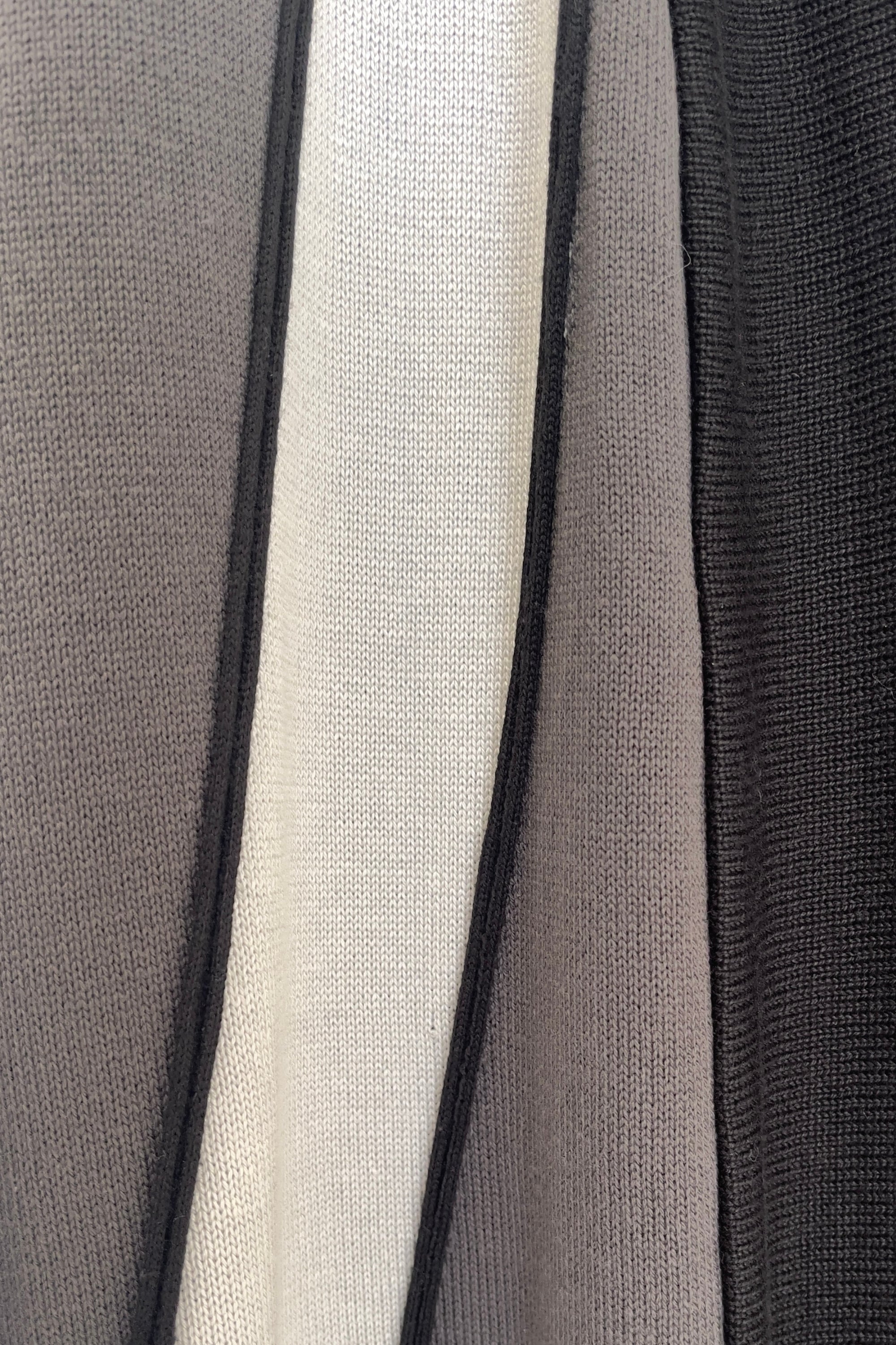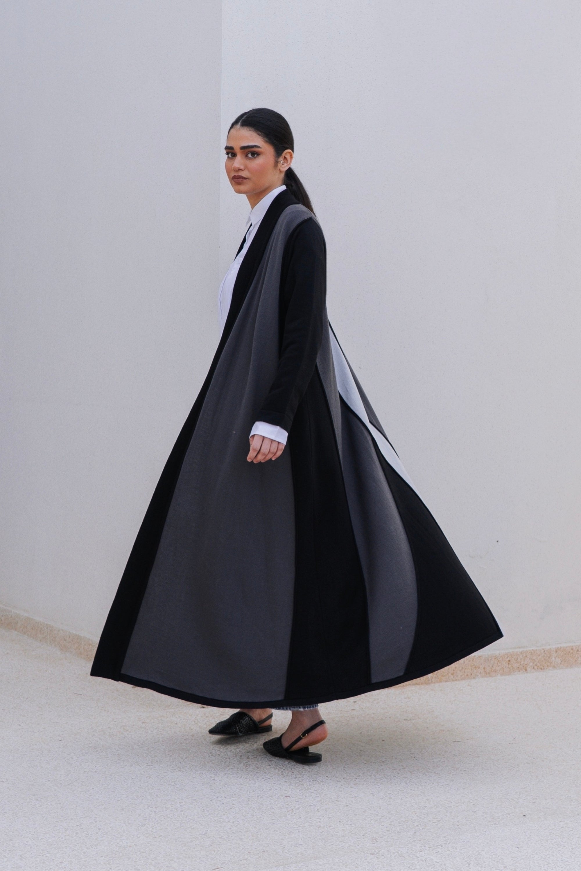 When the holy month of Ramadan comes in the middle of February, a warmer Abaya is needed. Introducing our Knit Abayas: made of soft cotton-blend knit that combines the warmth of cardigans with the flare of Abayas. The sleeves are carefully designed to be functional if you're not into extra wide sleeves. The length is perfect for adding boots, heels, or mules and to wear with cropped pants or even longer ones. Pair it with our knit t-shirts or flare pants in black, cloud or gunmetal.