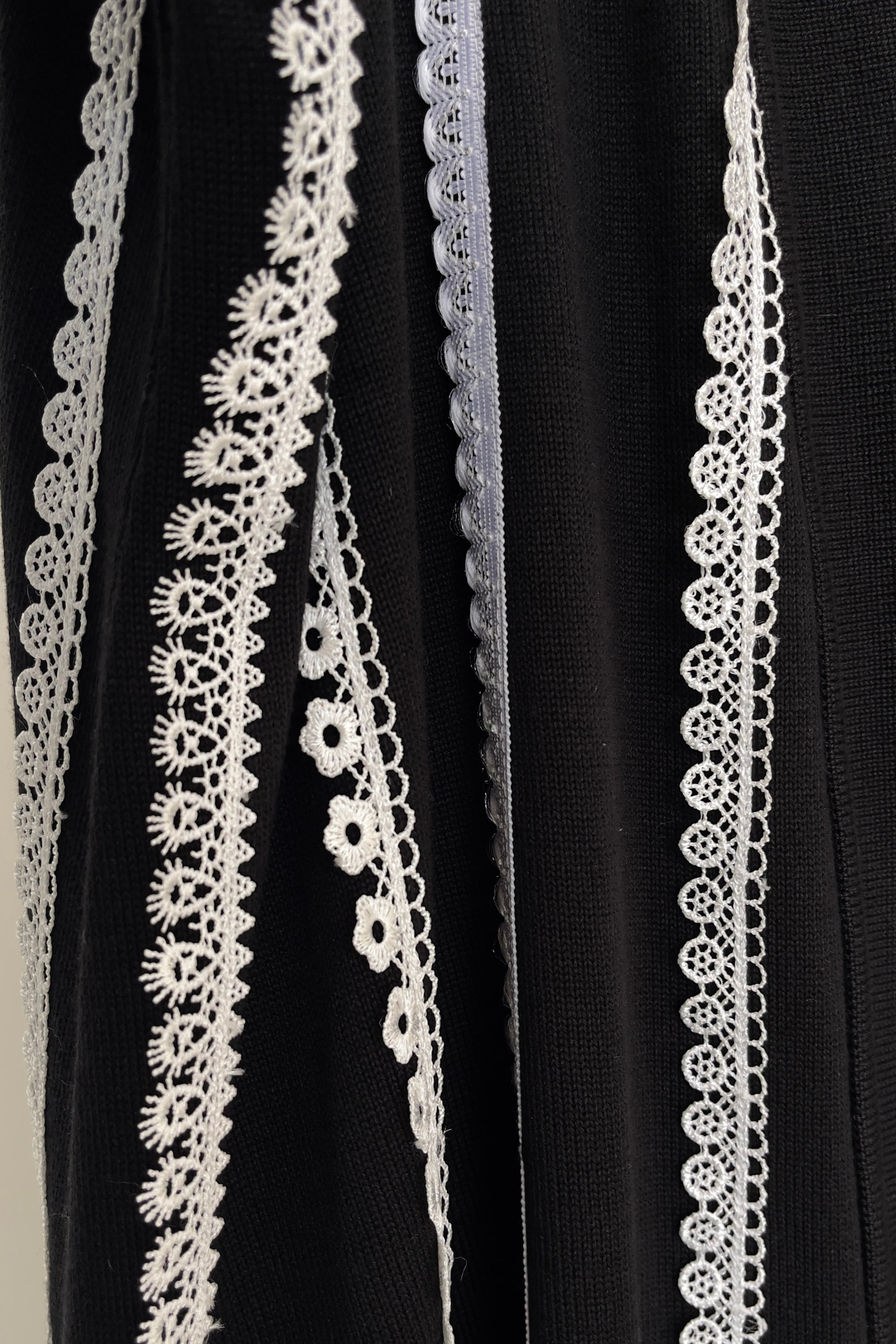 When the holy month of Ramadan comes in the middle of February, a warmer Abaya is needed. Introducing our Knit Abayas: made of soft cotton-blend knit that combines the warmth of cardigans with the flare of Abayas. The sleeves are carefully designed to be functional if you're not into extra wide sleeves. The length is perfect for adding boots, heels, or mules and to wear with cropped pants or even longer ones. This black version comes with delicate lace trims that create a truly unique look.