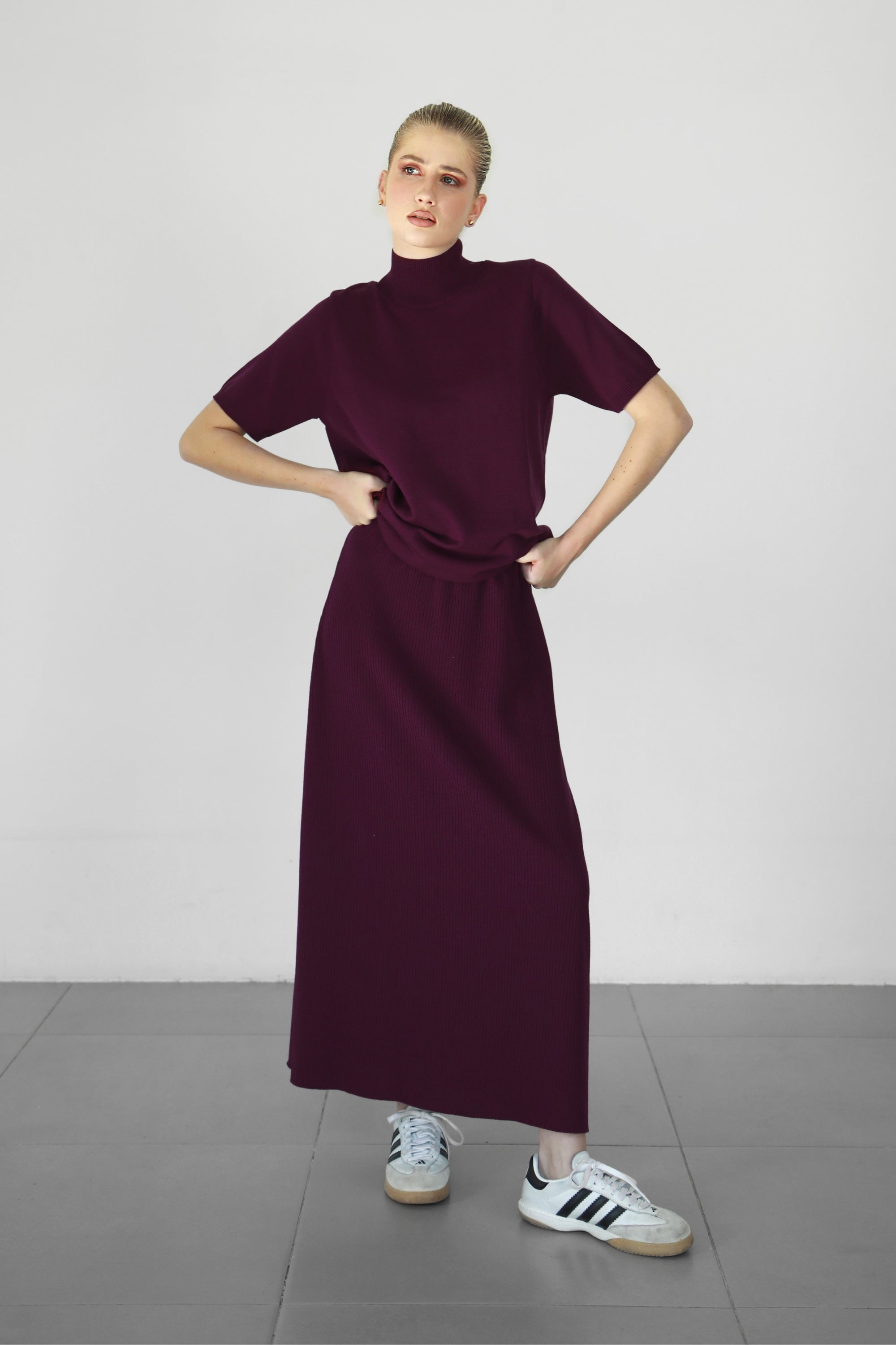 Basic Knit T-Shirt - Aubergine
