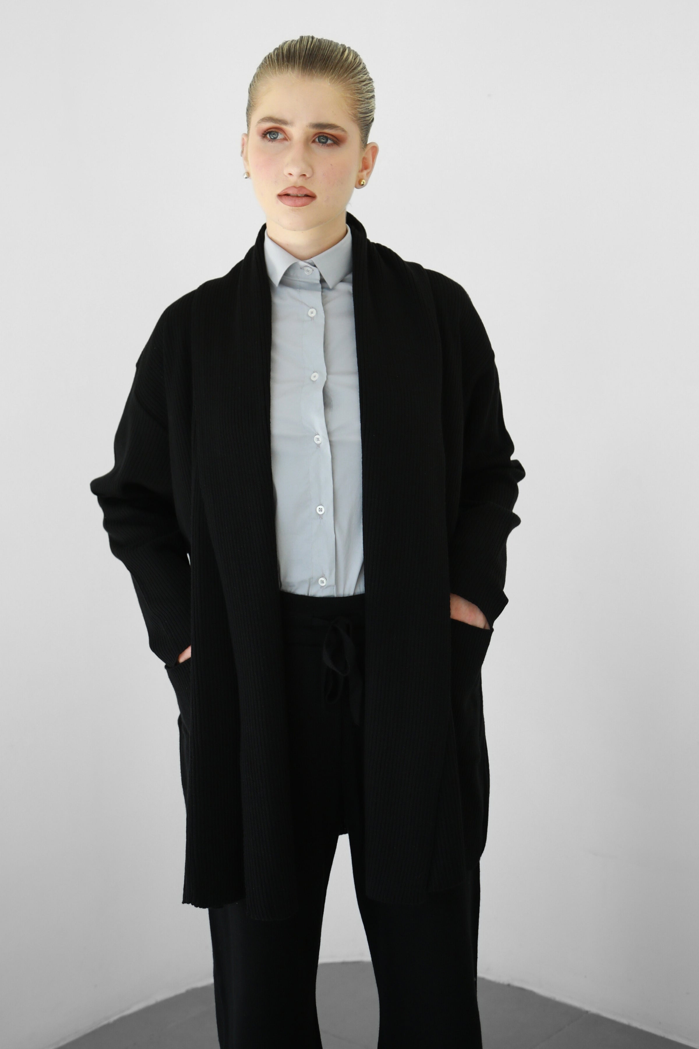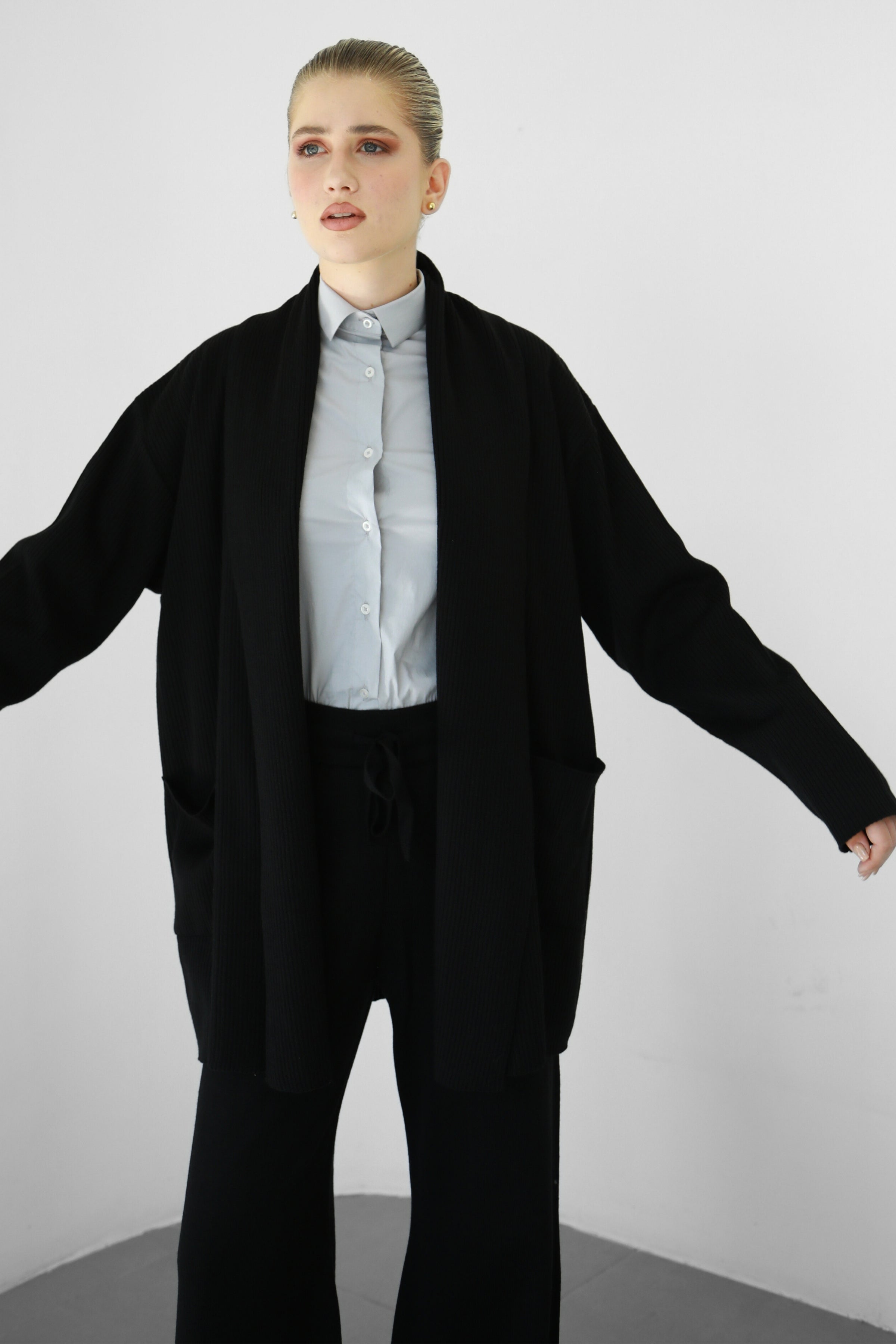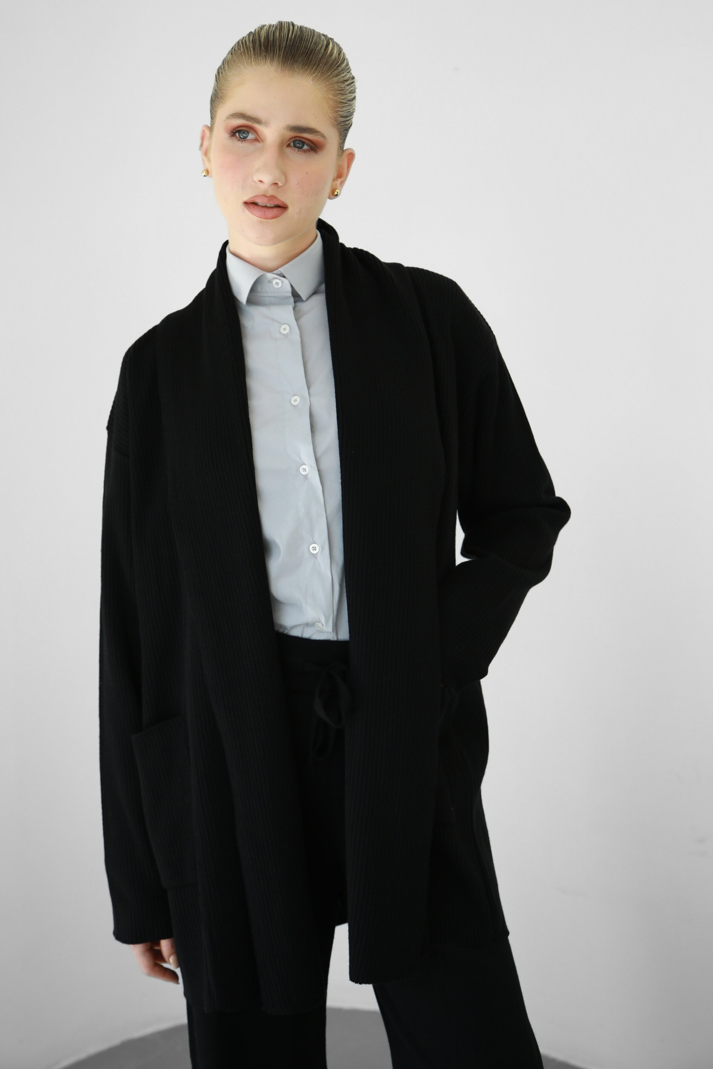 This draped knit cardigan is an all-year wardrobe essential. Perfect for layering and for when it gets a bit chilly. With its oversized cut, it will make an ultra comfortable addition to any outfit. Our knit fabric is made from a cotton-blend yarn for a soft and light feel.