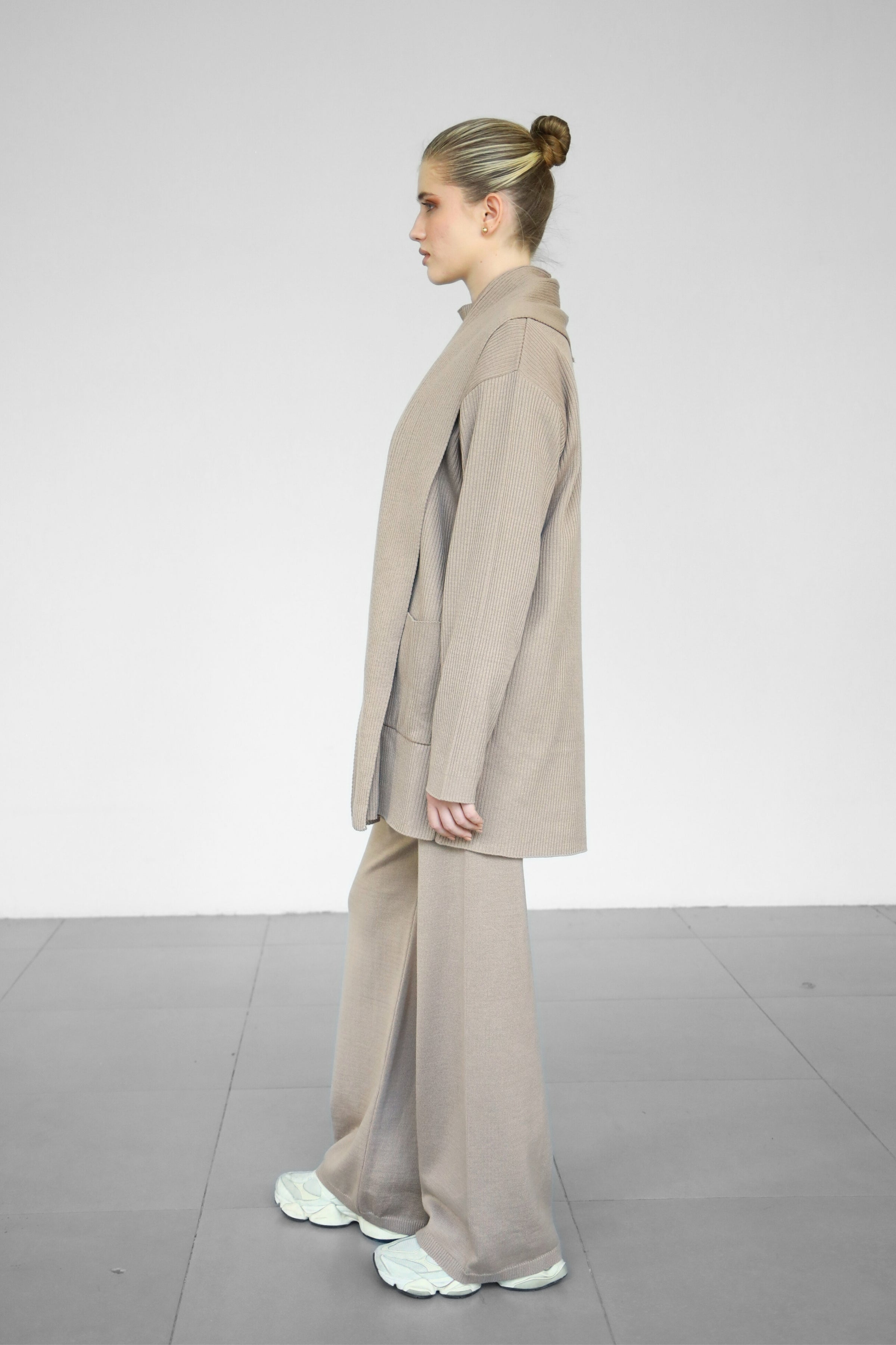 This draped knit cardigan is an all-year wardrobe essential. Perfect for layering and for when it gets a bit chilly. With its oversized cut, it will make an ultra comfortable addition to any outfit. Our knit fabric is  made from a cotton-blend yarn for a soft and light feel.