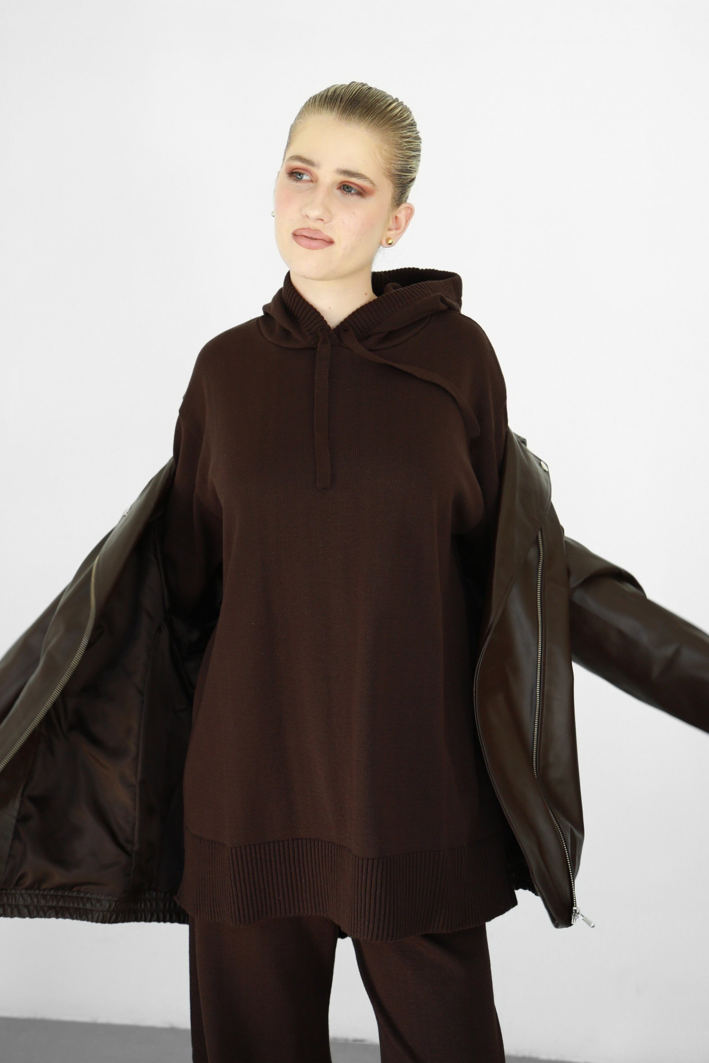 Relaxed Knit Hoodie - Cocoa