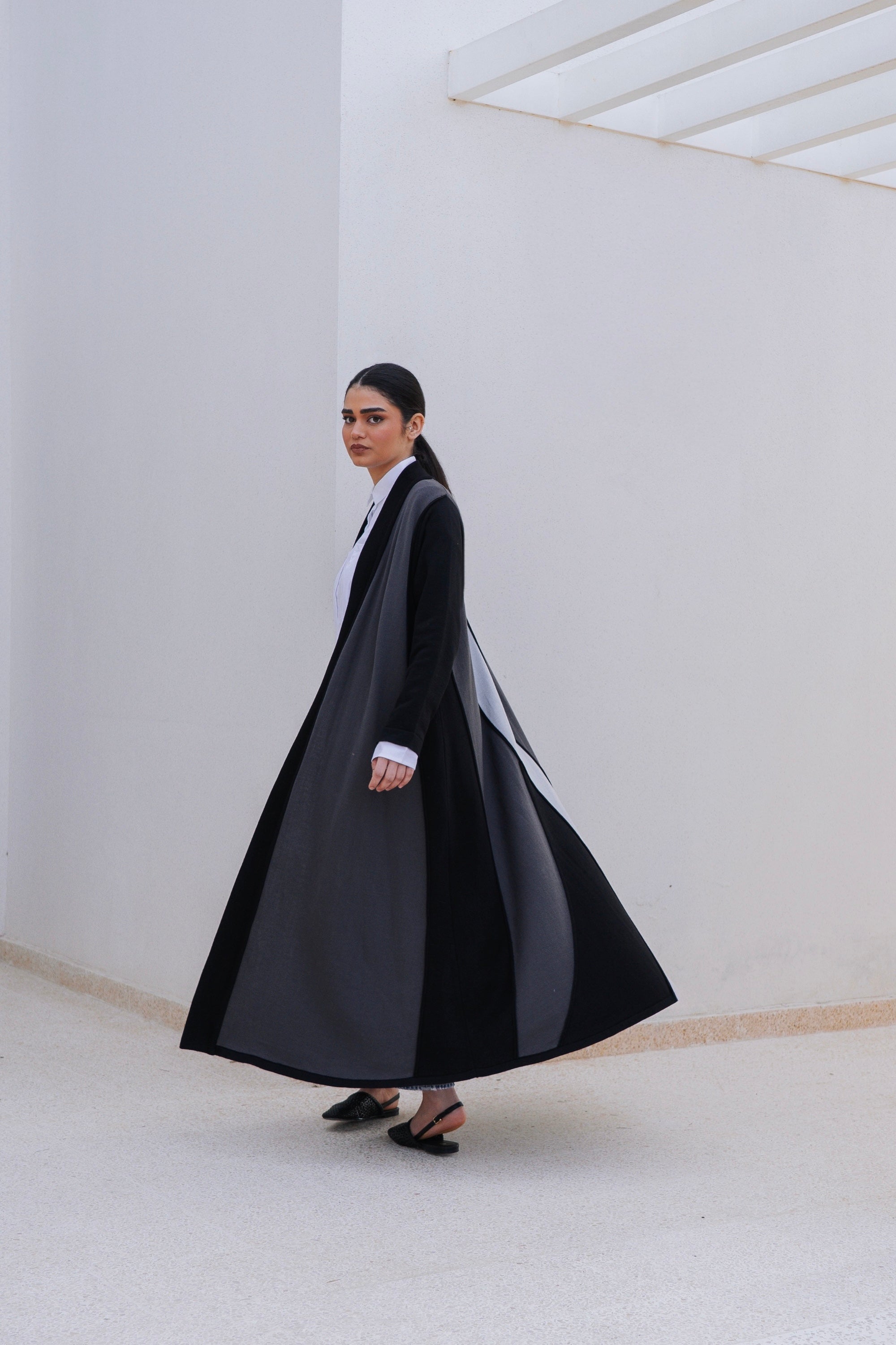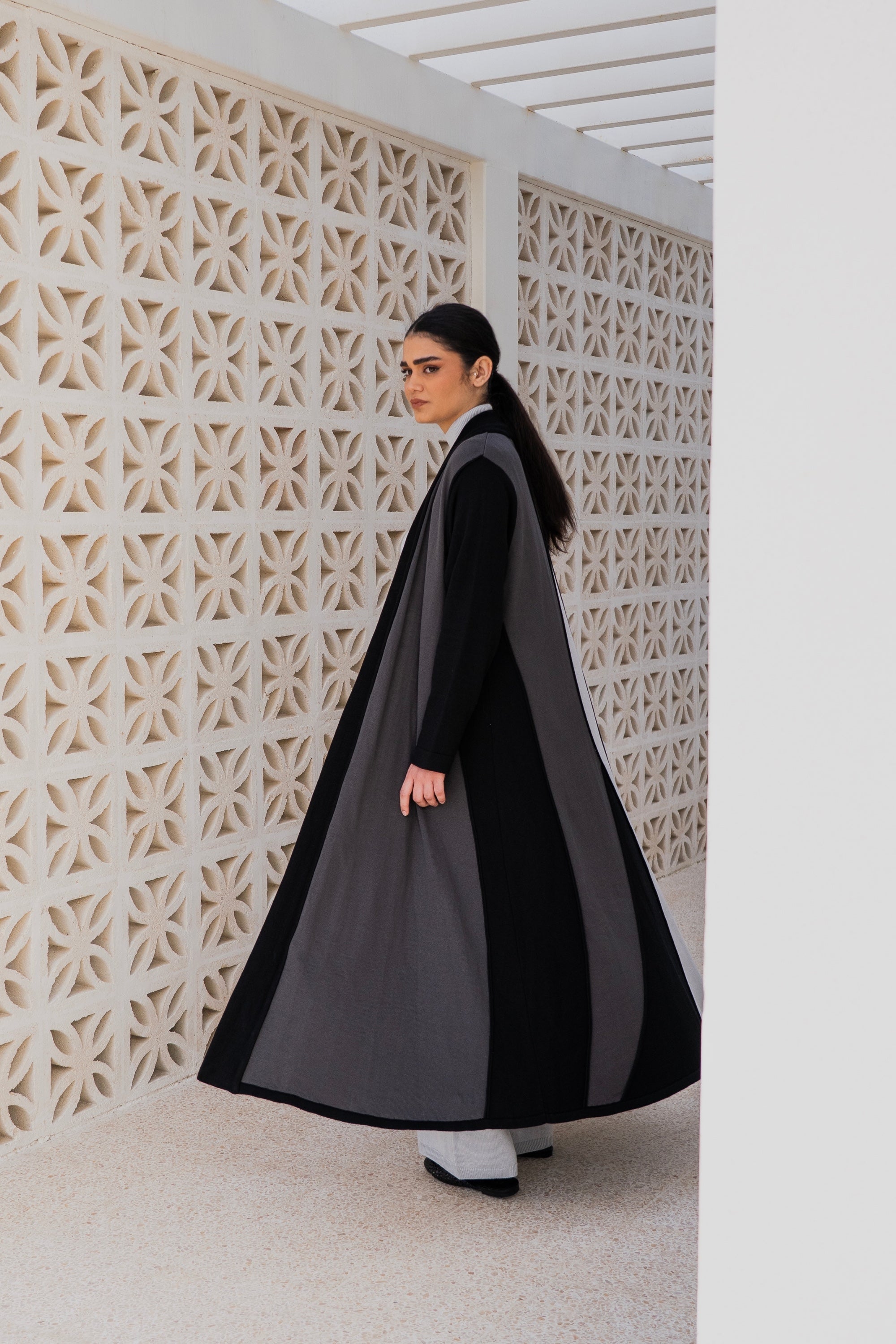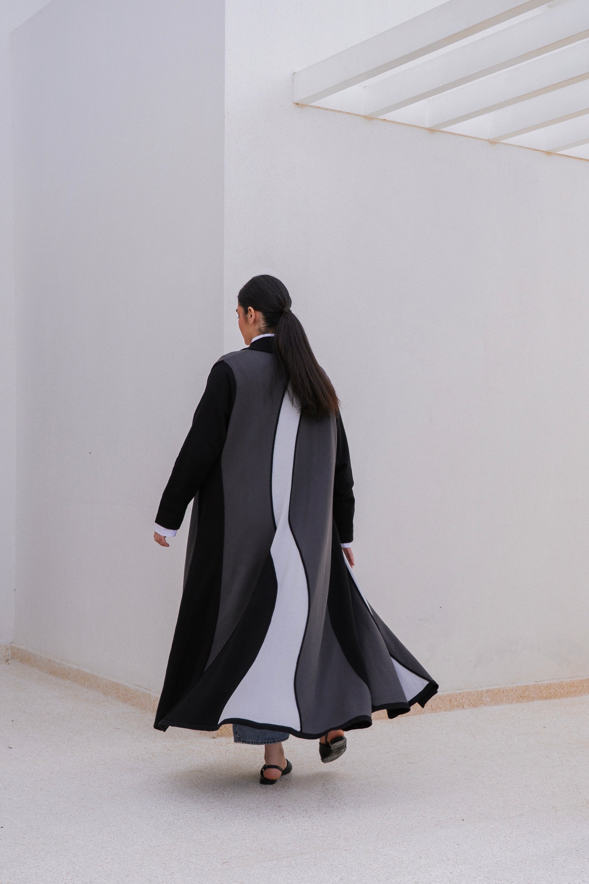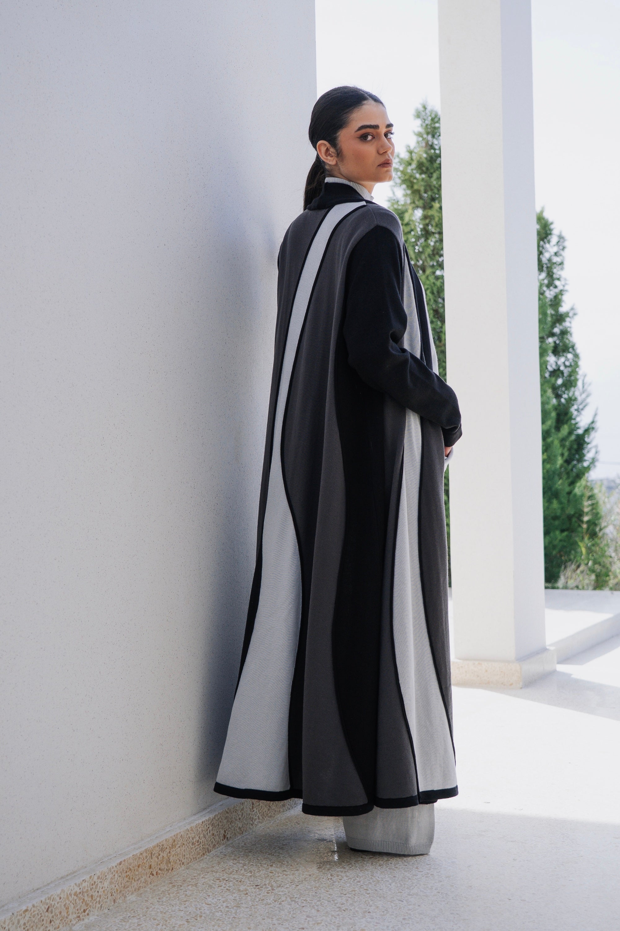 When the holy month of Ramadan comes in the middle of February, a warmer Abaya is needed. Introducing our Knit Abayas: made of soft cotton-blend knit that combines the warmth of cardigans with the flare of Abayas. The sleeves are carefully designed to be functional if you're not into extra wide sleeves. The length is perfect for adding boots, heels, or mules and to wear with cropped pants or even longer ones. Pair it with our knit t-shirts or flare pants in black, cloud or gunmetal.