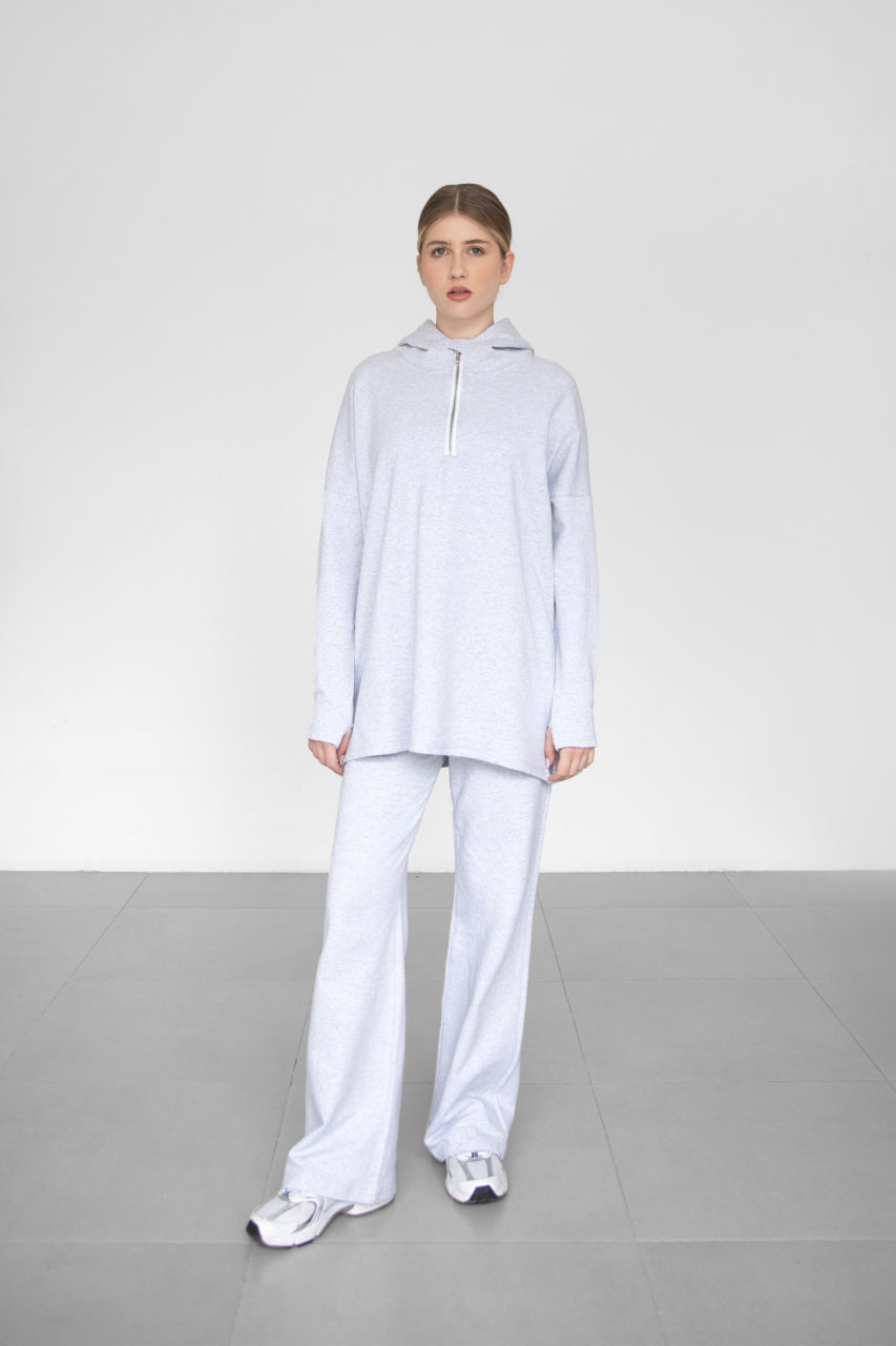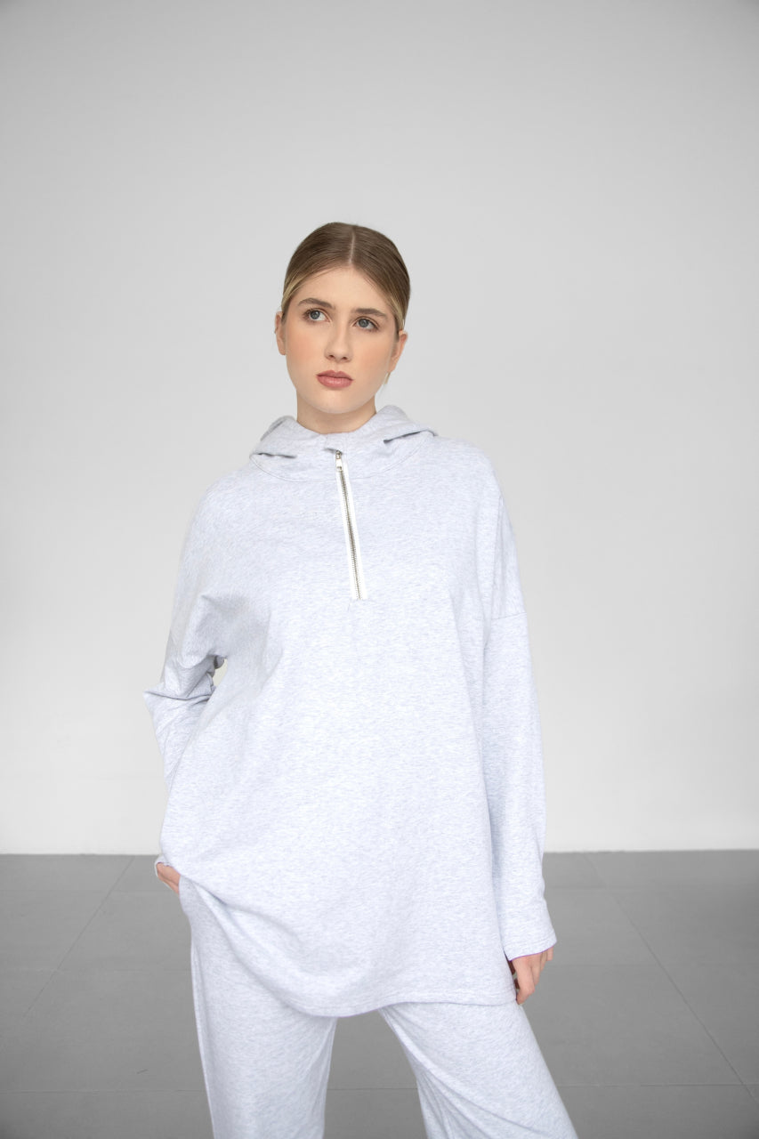Light Warm Half Zip Hoodie - Grey Melange