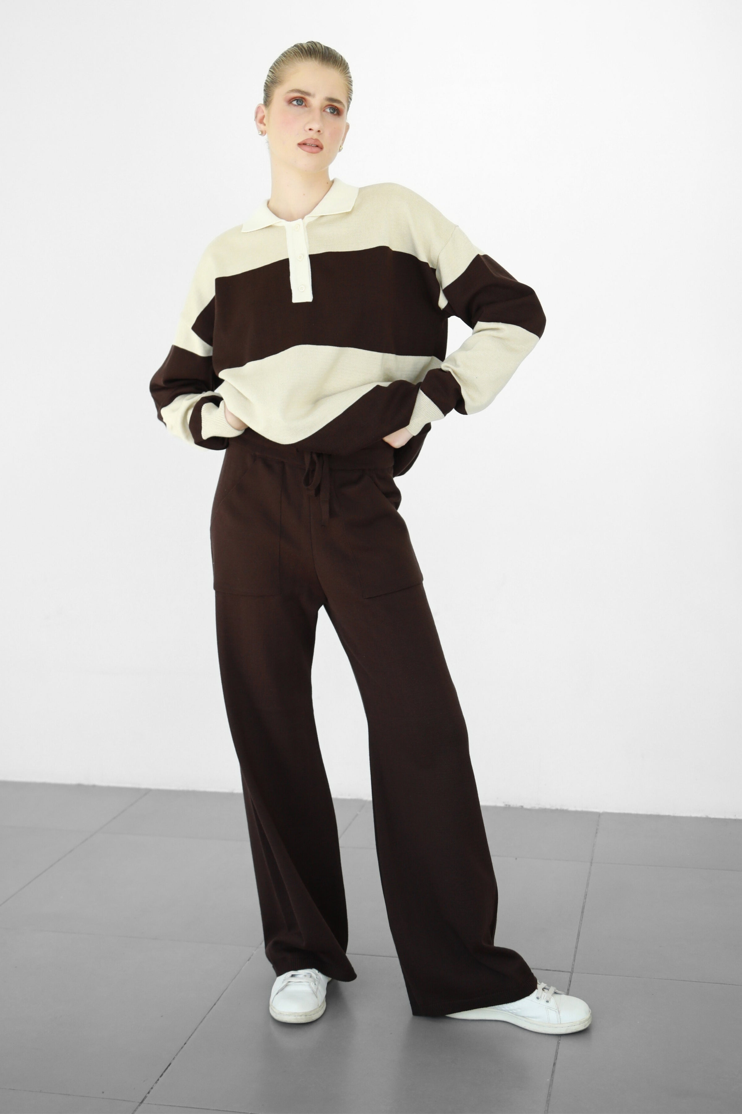 An ultra comfortable knit flare pants with elastic drawstring and side pockets. Our knit fabric is made from a cotton-blend yarn for a soft and light feel.