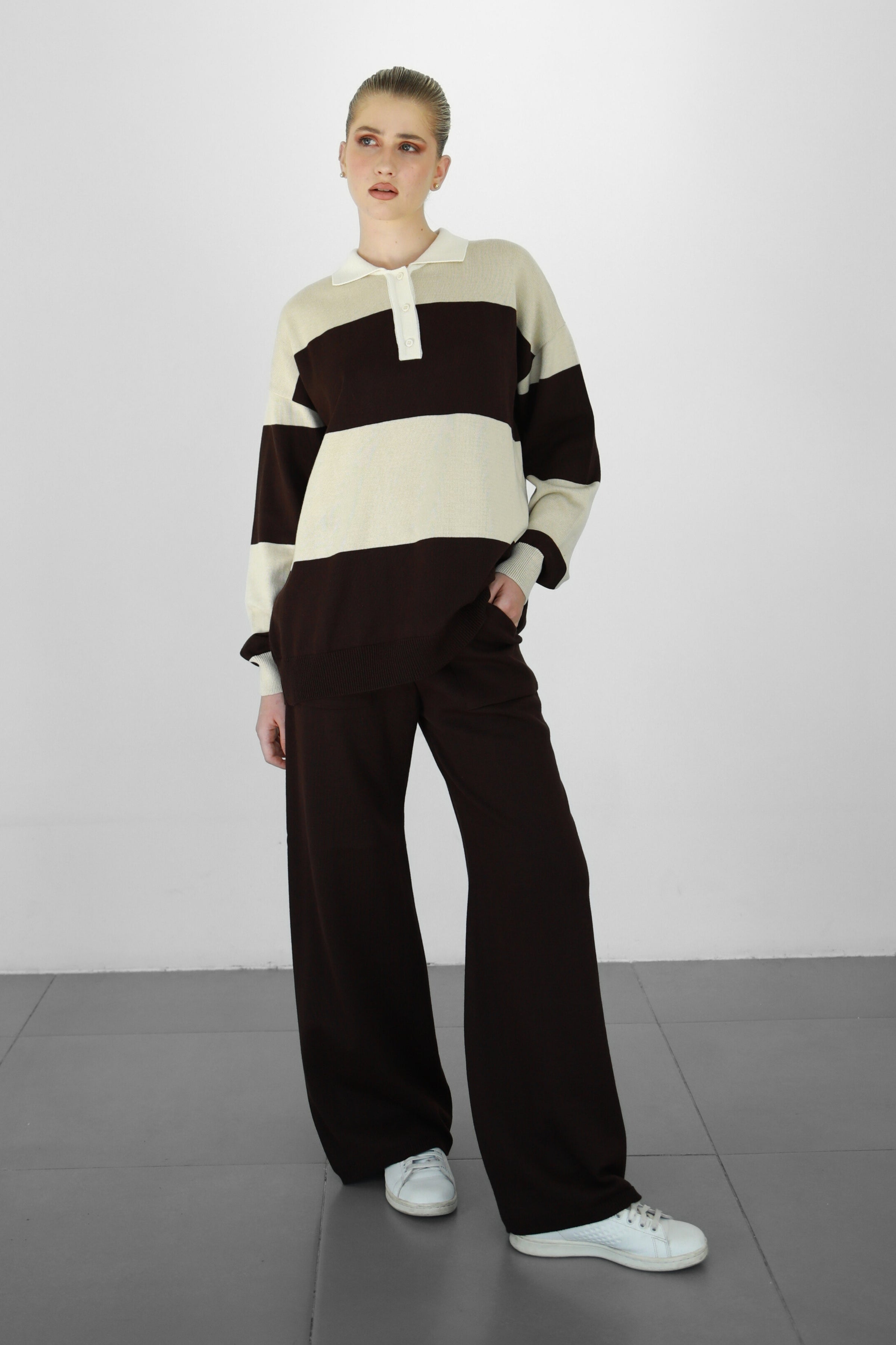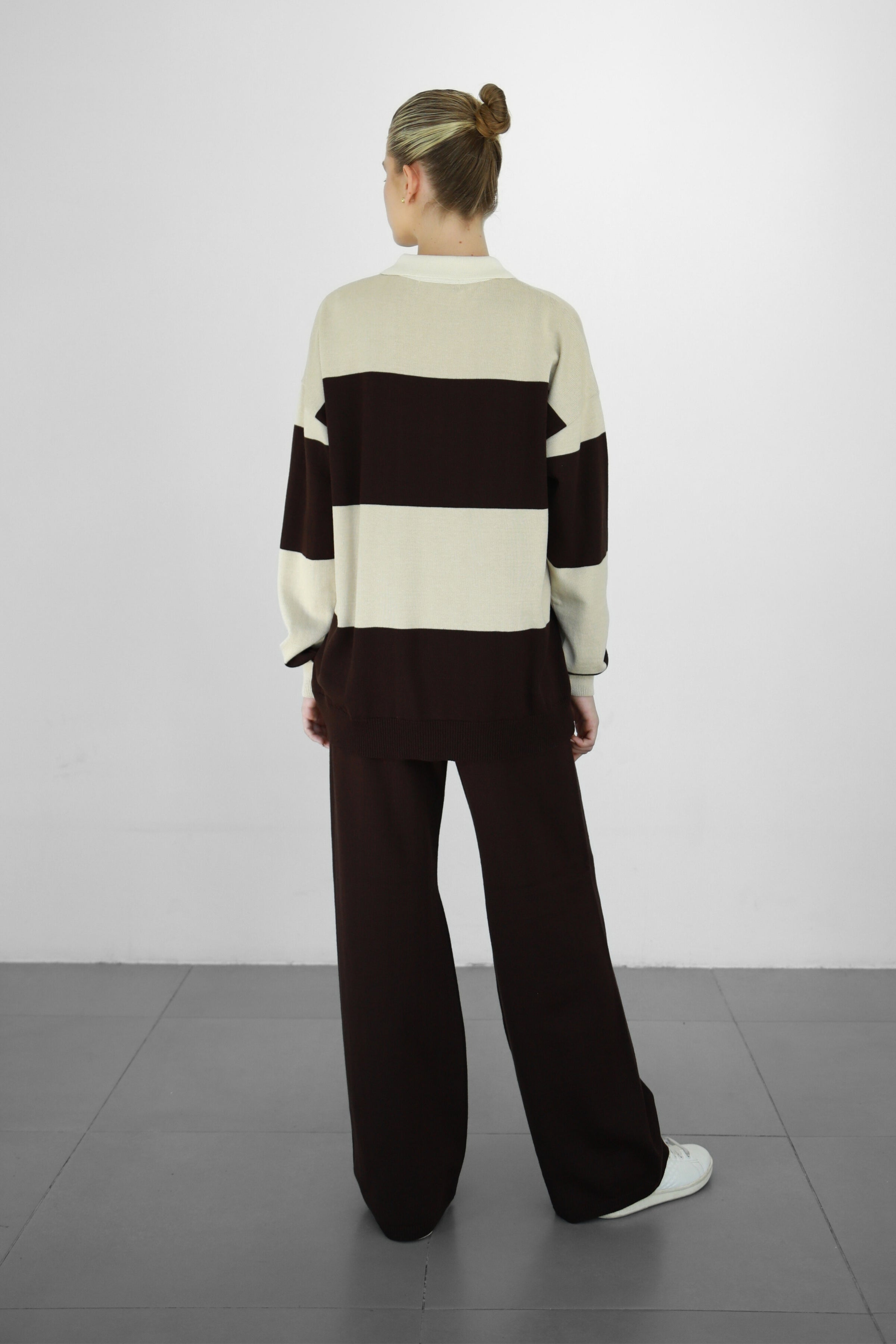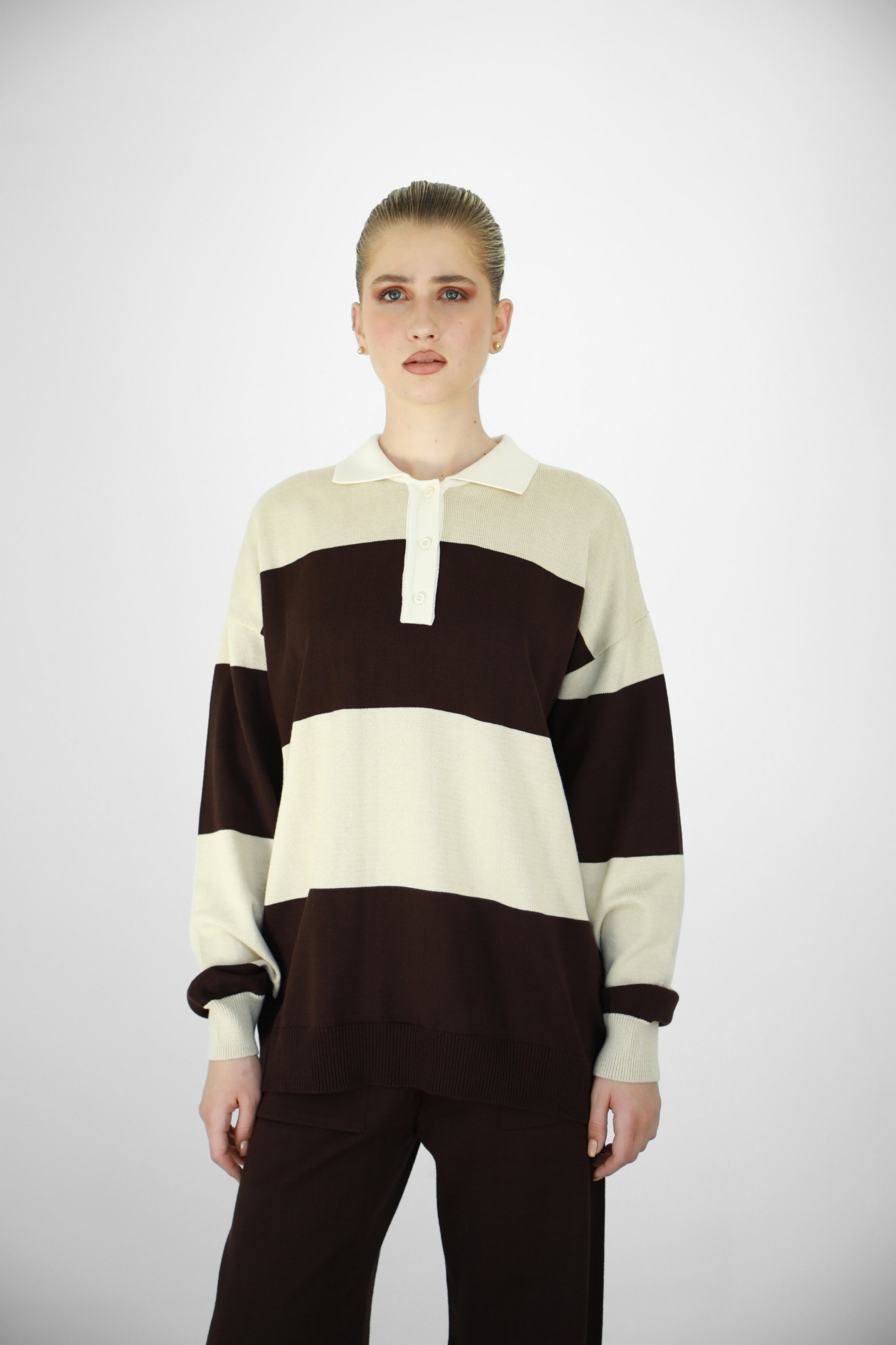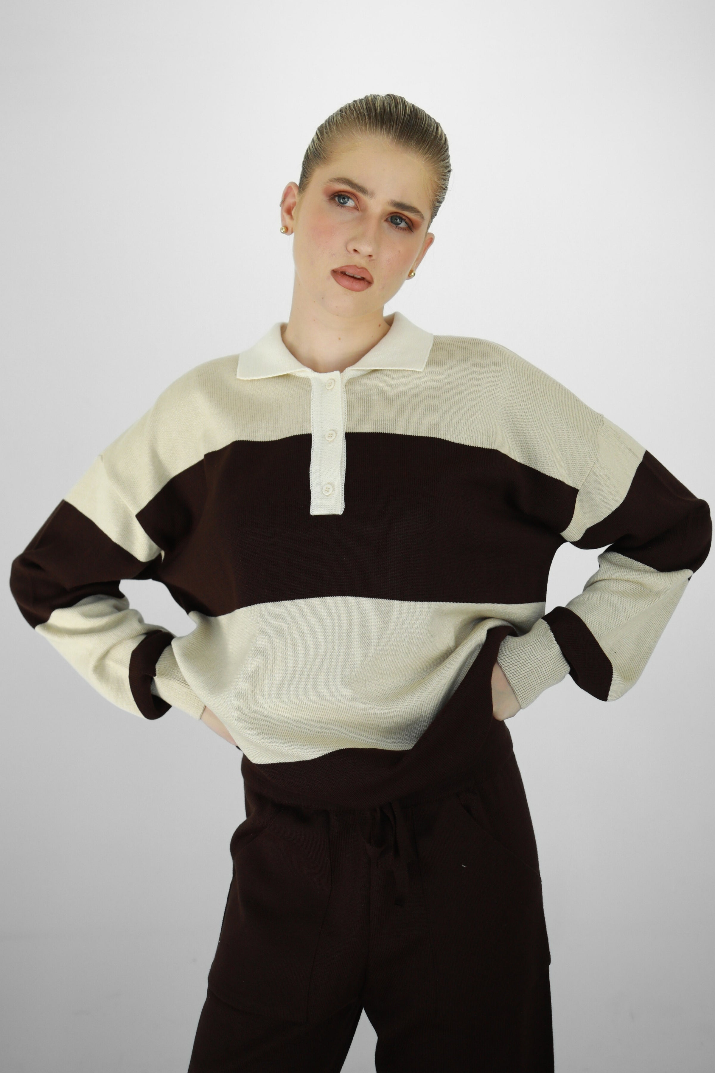 Knit Colorblock Polo Sweatshirt - Chocolate